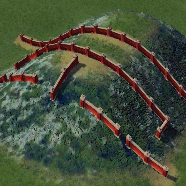 This brick wall is part of a 4 piece set. They are parks that can be plopped anywhere. They also conform to the terrain. Now you can build impromptu parks of nearly any shape or size (assuming you want to surround it with a brick wall…)