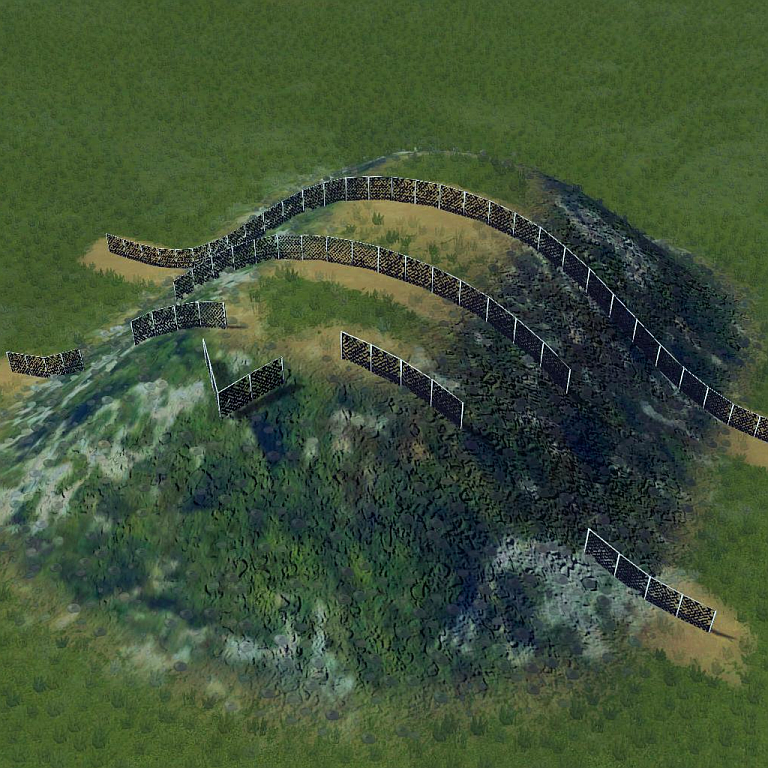This chain link fence gate is part of a 6 piece set. They are parks that can be plopped anywhere. They also conform to the terrain. Now you can build impromptu storage areas of nearly any shape or size (assuming you want to surround it with a fence…)
