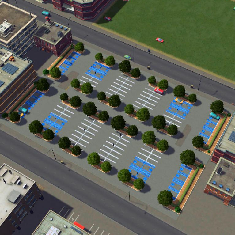 This is my attempt at a more realistic parking lot, at least based on what I see here in the American Mid-West.