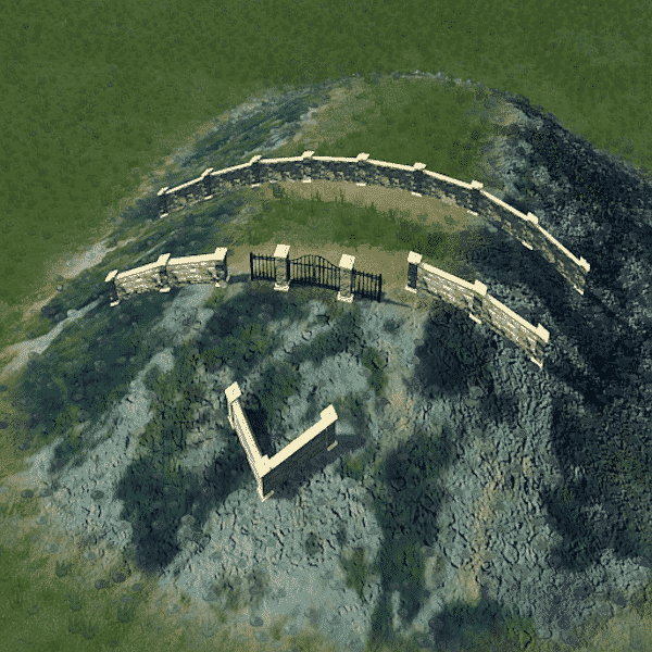 This is a ploppable version of my stone wall set which conforms to the terrain. There is a 1×1, 4×1, corner and iron gate piece.