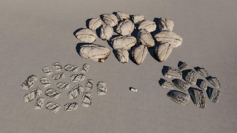 Includes 3 random rocks.