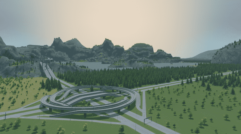 A balanced map inspired by the south of the Lake District in England. Has plenty of natural resources. A large lake is surrounded by steep mountains. A river runs from the lake to the sea. A tributary joins from another lake. Highways are built throughout the map weaving between the mountains though around half the map is flat to allow for effcient city building. Overall a beautiful and interesting map allowing large and productive cities.