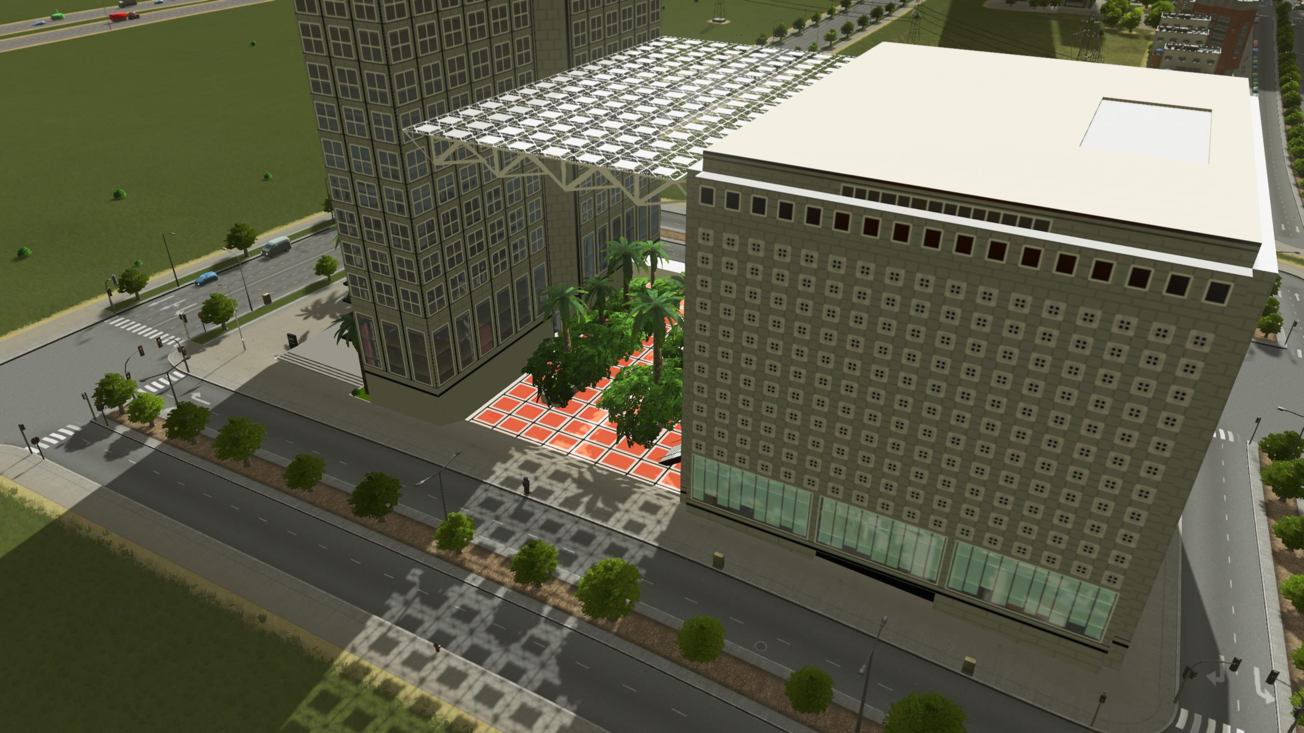 Comment: The roofed plaza was tricky. And why has the flagpole only european flags?