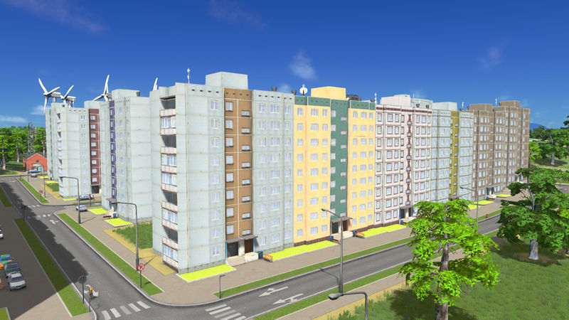 All buildings in this set ara 9 Floor Russian Tenements, serial project 111-83. It is one of the most common plattenbau buildings in Russian cities. You can see in in such cities as Volgograd, Rostov-na-Donu, Kaluga, Tula, Solicamsk etc. The model is very detailed and neat.
