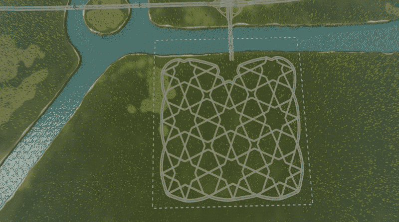 Heres another starter grid (geometric pattern) of single lane, two way roads, with a perimeter made of three lane, two way roads.
