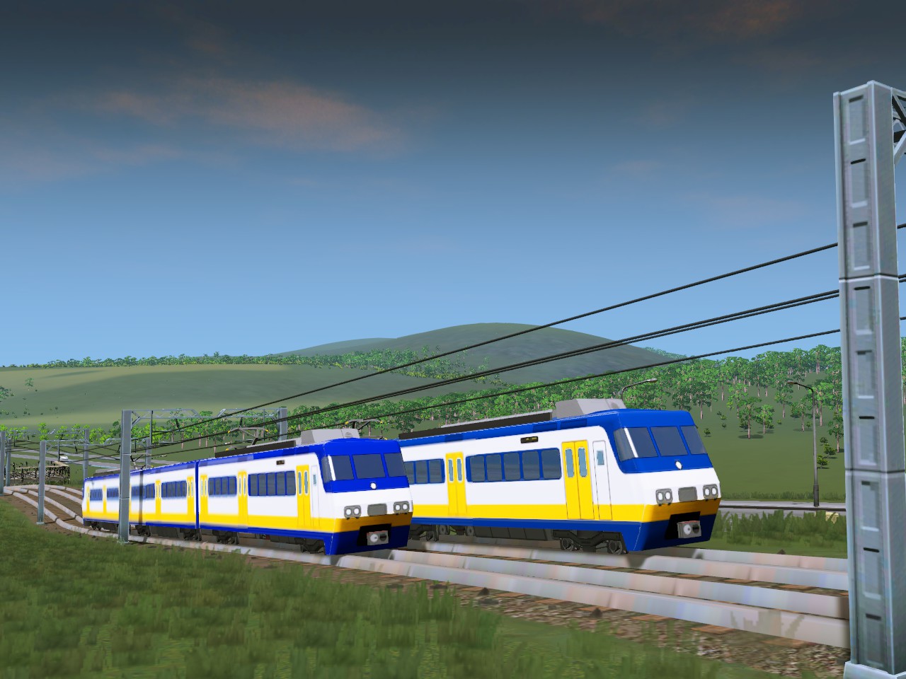 This train runs ingame at 16 (which is slower than the default trains) and carries 100 passengers. It’s ideal for small city and rural lines. And it has line colours aswell.
