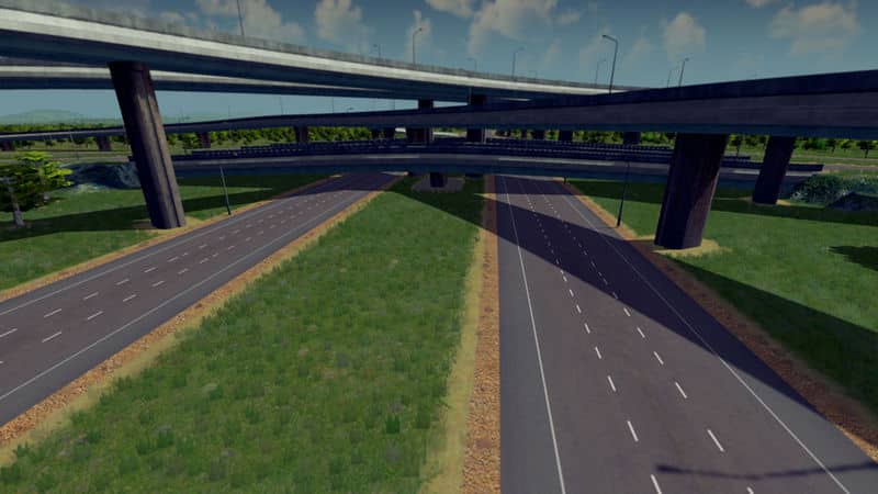 Aggressive superelevation (banking the curves) would probably work splendidly to make the right-hand turns a bit faster, but unfortunately this option is not available to us in Cities: Skylines.