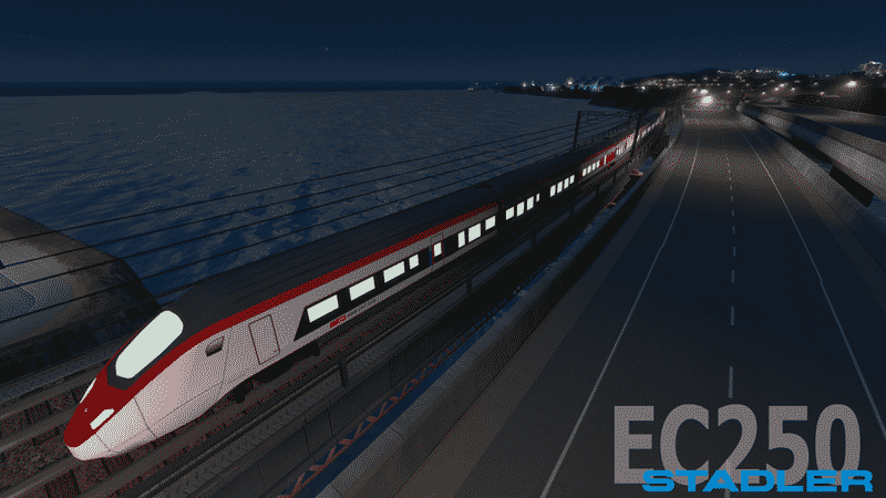 Stadler EC250 will be the first part of my project of SBB 2035 fleet in Cities Skylines. Swiss Federal Railways have a plan of refurbising its existing fleet by the 2035 with new trains, in order to answer the increasing passenger numbers and aging fleet.