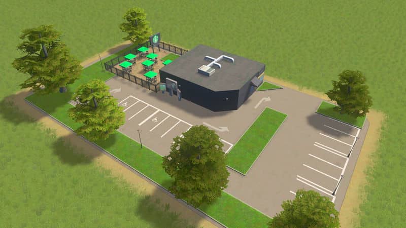 This Starbucks is located on the North end of Toronto, CA. It is the only store in the district with a Drive-Thru. This building was made into a unique building with RICO compatibility to allow you to plop more than one of these in your city bringing continuous caffeine and entertainment to your CIMs.