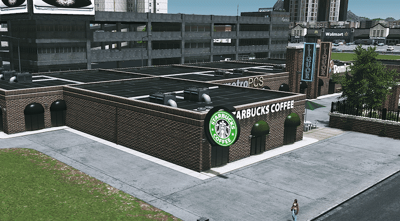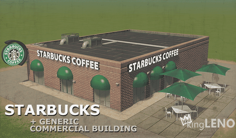 Because there can never be enough Starbucks on the workshop! This building was created as a stand alone building, but can be clipped together to make a shopping center. Included in this asset is a General Commercial Building which is the same building without tables and Starbucks logos + color variations.