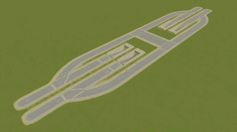 A compact starter 2-lane interchange that can be used at the start of a new city. Can be upgraded to highway and sliproad with no issues. I’ve used this in my last two cities and have had no traffic issues so far. Any feedback or recommendations, please let me know in the comments. Thanks!