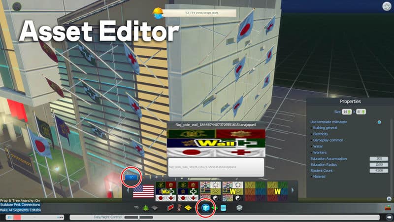 (Prop Anarchy MODを使うと空き地だけではなく建物の敷地内の地面にも貼り付けられます。)