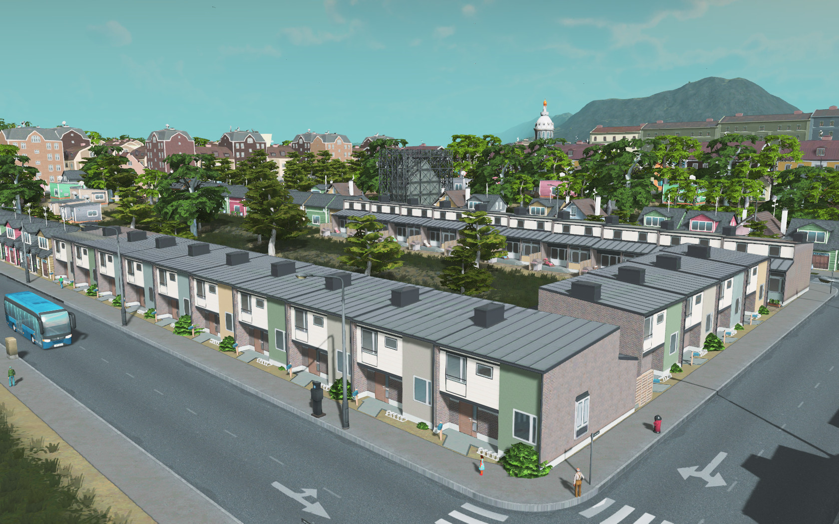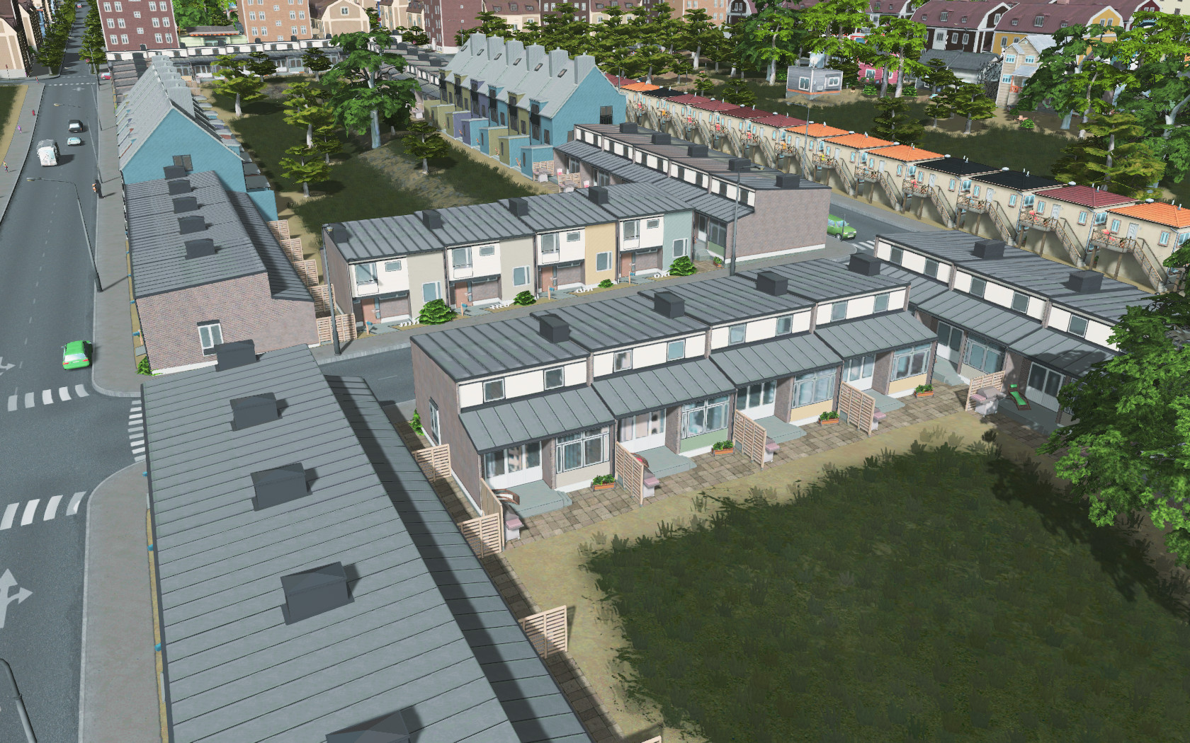 Based on the iconic Riksrådsvägen area in Bagarmossen, Stockholm, these level 3 low residential buildings come in more colours than just the original 50’s beige. Artistic licence ?