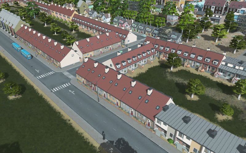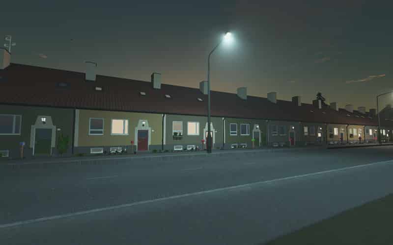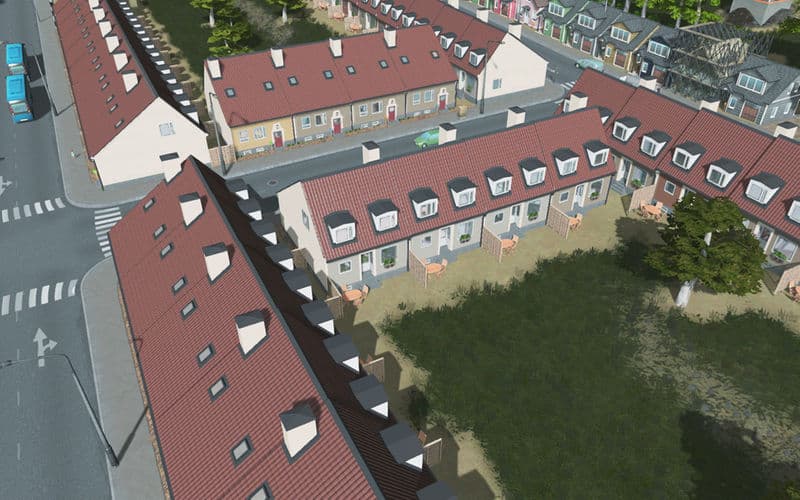 Skönstaholm in Hökarängen, Stockholm was built around 1950 and consists of terraced and semi-detached houses of varying sizes. I picked one of the smaller types as the basis for this model. Use the excellent Building Eyedropper Tool for easy placement in neat rows.