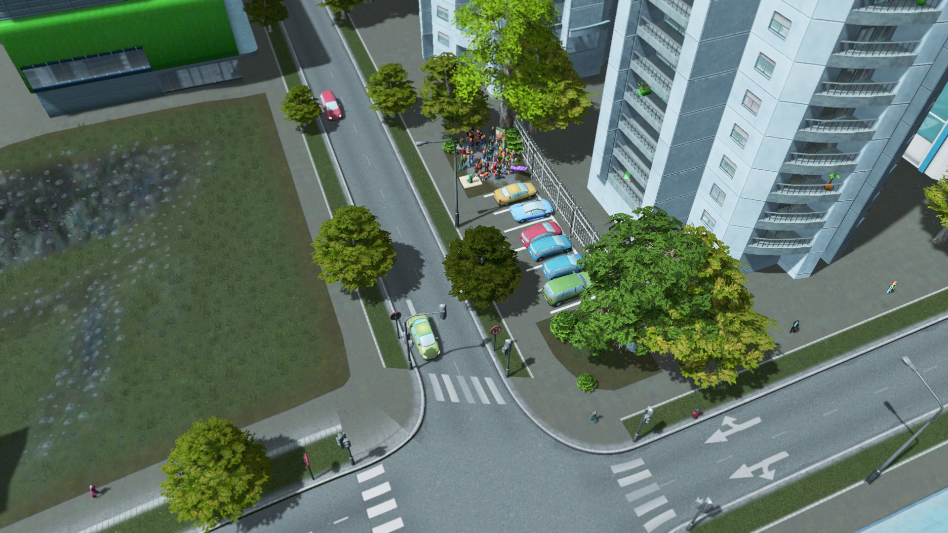 Everytime a truck delivers to shops, ambulances hold or somebody is transported to the hearse, the whole queue cant move. To give space, for people to overtake those maniacs, I created this 4×1 Park which blends into the enviroment and solves that problem.