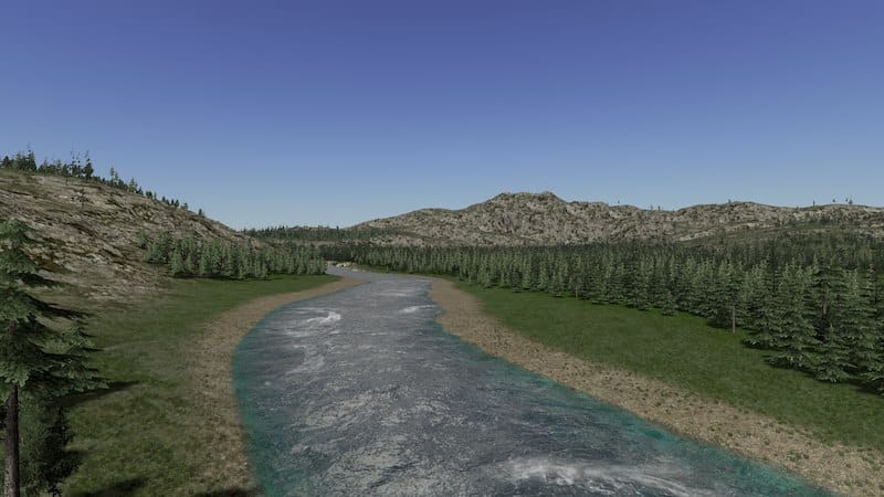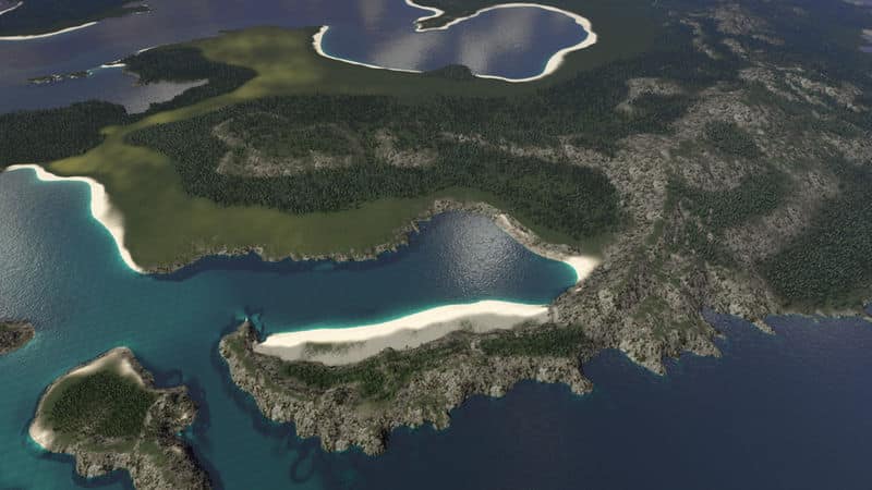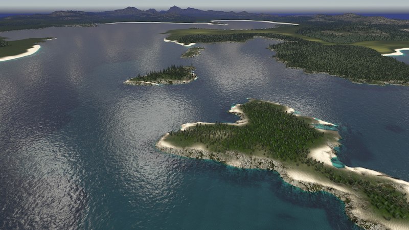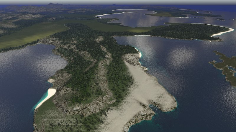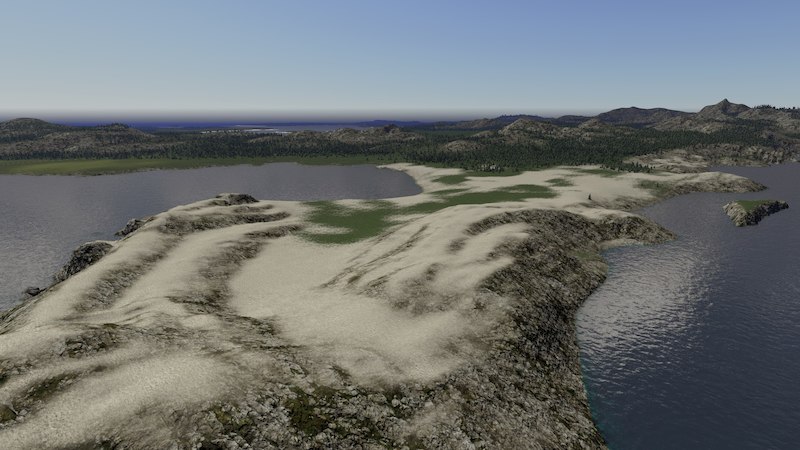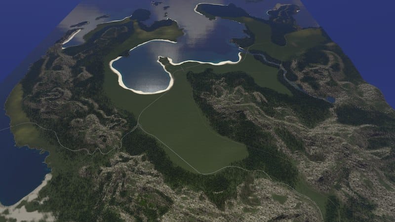 Strannon Bay is a fictional map. It is 100% handmade and features a large central bay, a small river, rocky and sandy shorelines, and a large mountain range with two easily accessible passes. Large areas of flat land surround the bay with opportunities for more development in and around the mountains for those looking for more challenge.