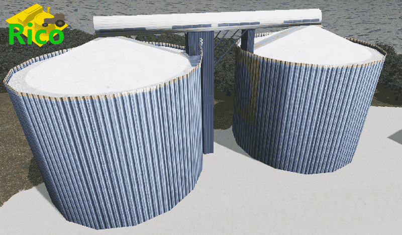 Pair of 26m high sugar silos for the refinery but you may use them for other things too if you wish. Comes with RICO for farming.