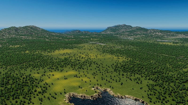 A Builder’s Dream! Lots of flat, open terrain for you to build the city of your dreams!