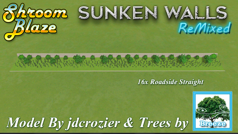The Original Sunken Wall Collection was created by jdcrozier. I have taken his original assets and redecorated them using Breezes tree assets to give them a more side of the road wild country look. I have assigned these assets custom UI priorities and will show up in the pedestrian paths menu under parks & beautification with custom sleek thumbnails!