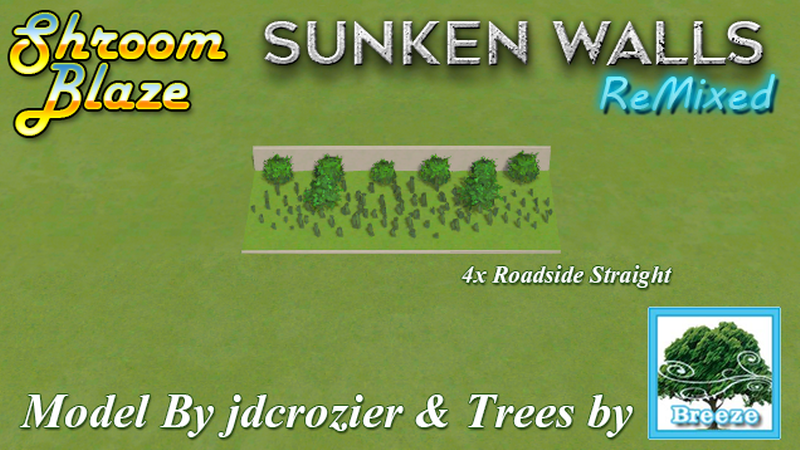 The Original Sunken Wall Collection was created by jdcrozier. I have taken his original assets and redecorated them using Breezes tree assets to give them a more side of the road wild country look. I have assigned these assets custom UI priorities and will show up in the pedestrian paths menu under parks & beautification with custom sleek thumbnails!