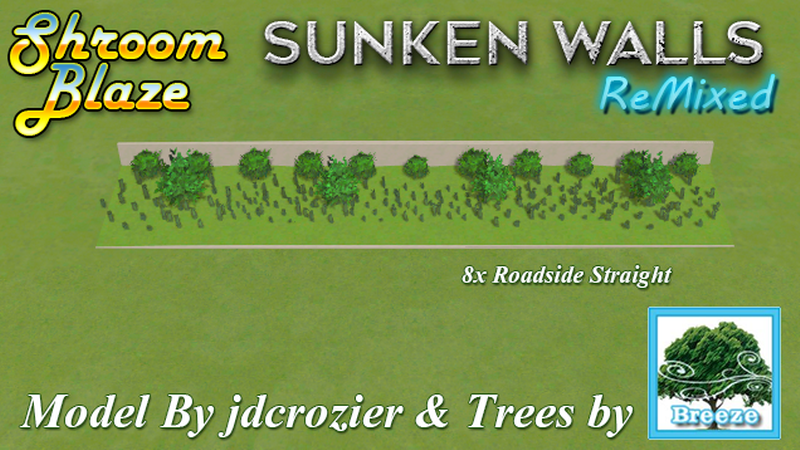 The Original Sunken Wall Collection was created by jdcrozier. I have taken his original assets and redecorated them using Breezes tree assets to give them a more side of the road wild country look. I have assigned these assets custom UI priorities and will show up in the pedestrian paths menu under parks & beautification with custom sleek thumbnails!