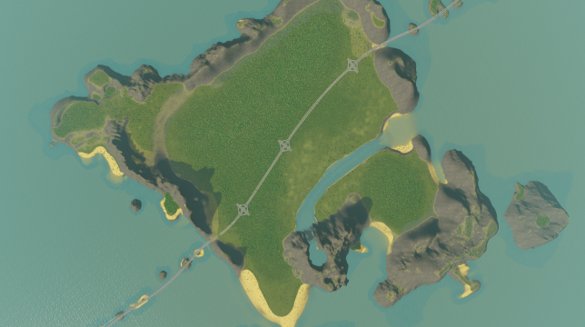 Flat island with place for large hydropower plant. Enjoy!
