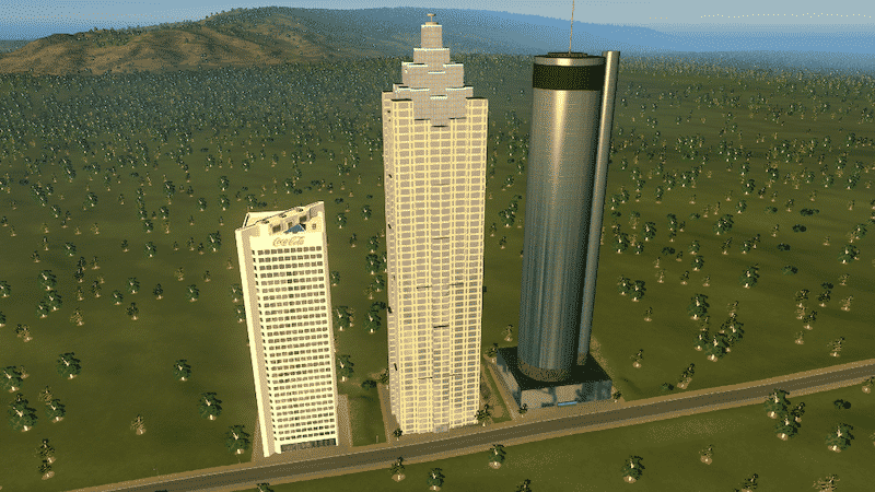 Included is a screenshot of my 2 (so far) Atlanta buildings with included. (Note that the actual Coca Cola HQ is not that tall)