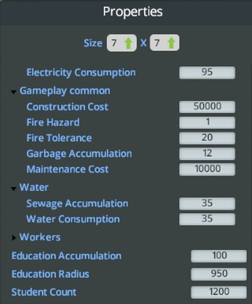 In the game it is an educational building on a 7×7 field.