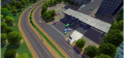 Can be plopped on the side of a road, fits some 4 cell roads under it – use anarchy or move it.