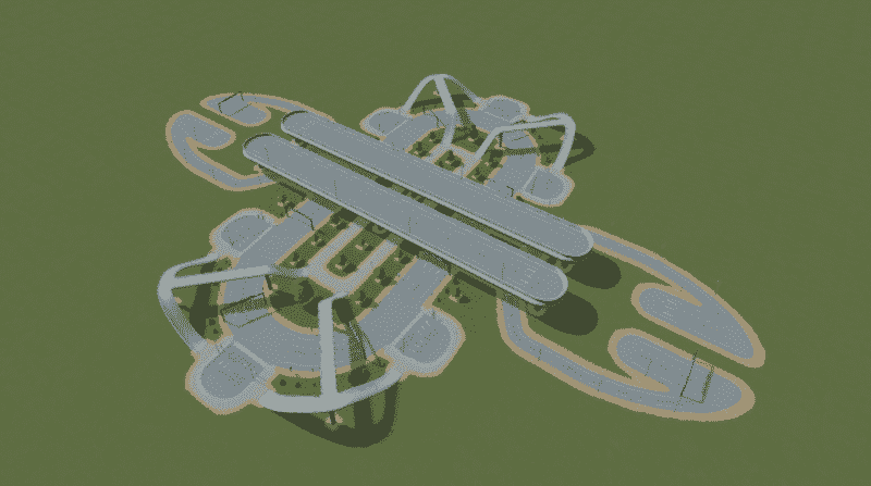 I found this really beautiful intersection and added some pedestrian bridges for the Cims to walk under the highway without intefering the traffic.