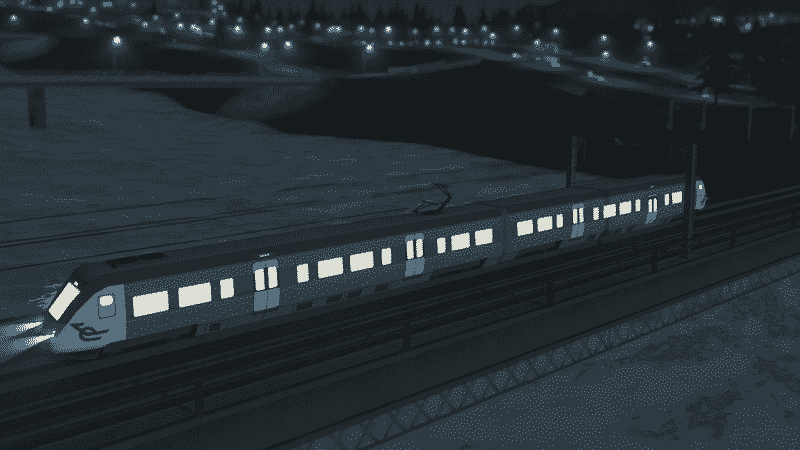 The Bombardier Regina electric multiple unit train used in Sweden for local and regional services. This model has 2 cars and has the color scheme used by Tåg i Bergslagen.