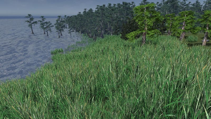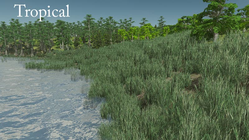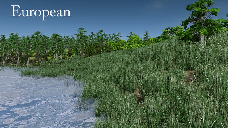 This is a generic 2 piece set of very tall grass originally meant for shores and waterways. Because it is made for shores, it may look too tall for any innercity or urban situations. It actually is closer to a grass species called Scirpus found in wetlands and can grow up to 9 meters.