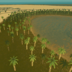 In the middle of the map lies “The Green Spine” which basically is just a green ridge going through the desert lands, making it look a bit more lush than it actually is. Would probably make for a pretty interesting “central park” if you were to build your city around it.