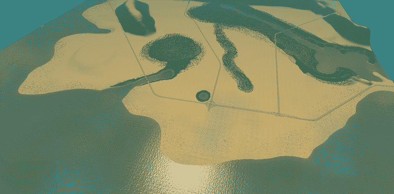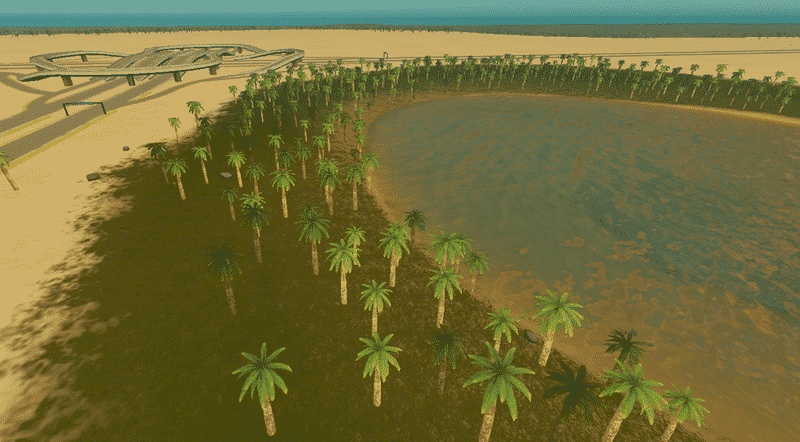 Apart from all the sand, there are a few notable landmarks in the Bijani Desert. First and foremost, there is Ali Oasis which is located near the highway turbine intersection in the starting tile. This particular spot is famous for having the cleanest water in the area, and therefore have a lot of wildlife visiting it. Secondly, there’s Lake Bijani which is located just southwest of the Ehsan plateau. Northwest of the plateau lies the mineral rich ground around the Ali Mountain.