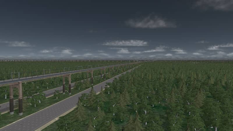 12 lane highway grid, all fully connected with a intertwined rail system.