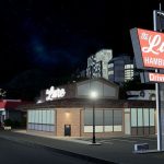 The building is based on the the last remaining real-life location, which closed a few years ago. The sign and logo are both created exactly from the real place.