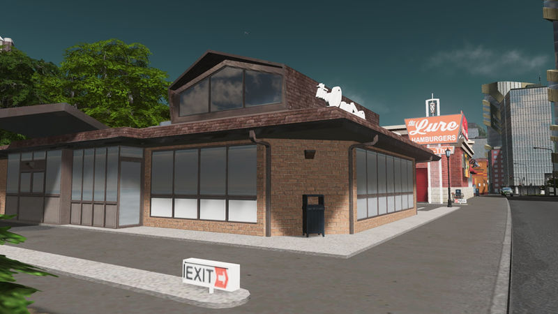 The building is based on the the last remaining real-life location, which closed a few years ago. The sign and logo are both created exactly from the real place.