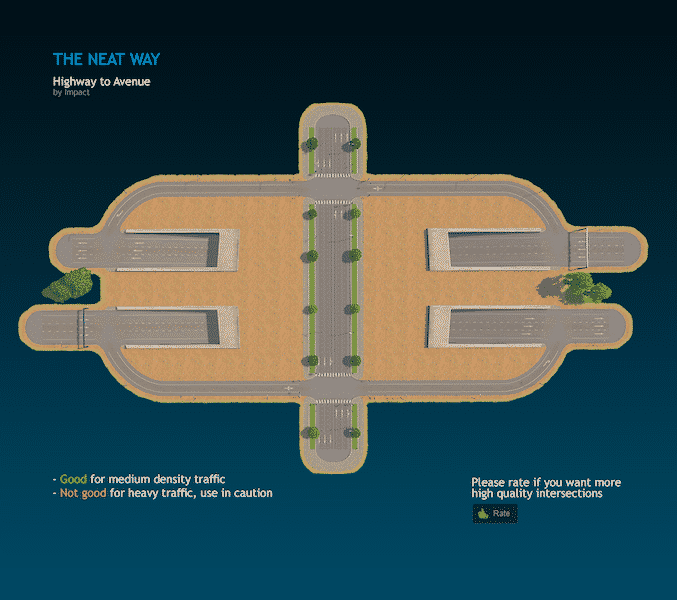 The Neat Way is a highway to avenue intersection. Very good for medium density traffic.