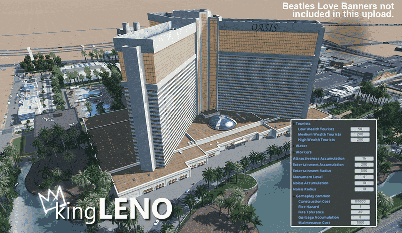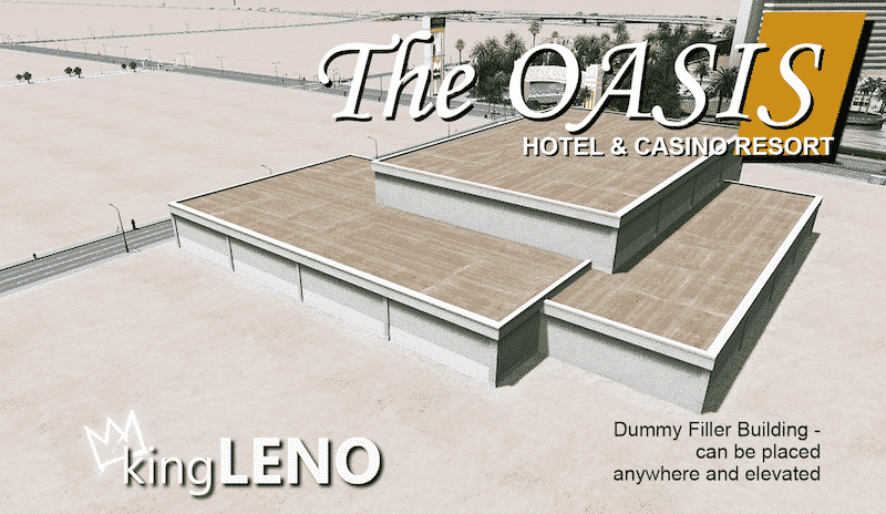 A large unique building based on the Mirage Hotel and Casino in Las Vegas, NV. It was created for Paradise Valley YouTube series. This asset includes the main building and 4 sub-buildings as well as a dummy filler building that can be elevated and lowered to fill in areas around the casino floor. It has a huge footprint of 33 x 27. The Beatles Love Banners on the front of the building are not included on the asset. The last picture represents how the building will appear in-game, you can also watch varying stages of the building’s development here!. I probably will release the 2 towers as separate assets as well so that they can be placed individually.