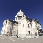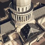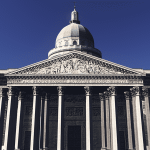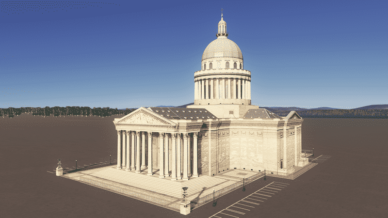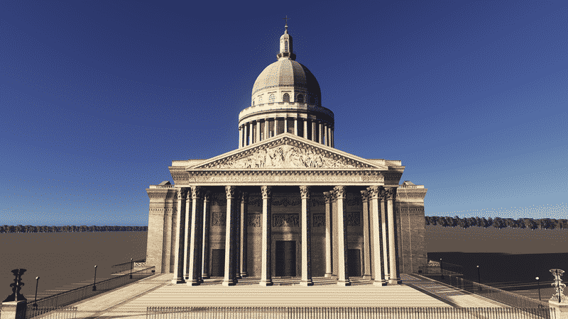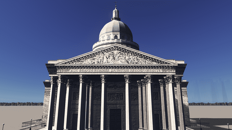 The Panthéon is a building in the Latin Quarter in Paris. It was originally built as a church dedicated to St. Genevieve and to house the reliquary châsse containing her relics but, after many changes, now functions as a secular mausoleum containing the remains of distinguished French citizens. It is an early example of neo-classicism, with a façade modelled on the Pantheon in Rome, surmounted by a dome that owes some of its character to Bramante’s Tempietto. Located in the 5th arrondissement on the Montagne Sainte-Geneviève, the Panthéon looks out over all of Paris.