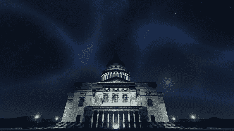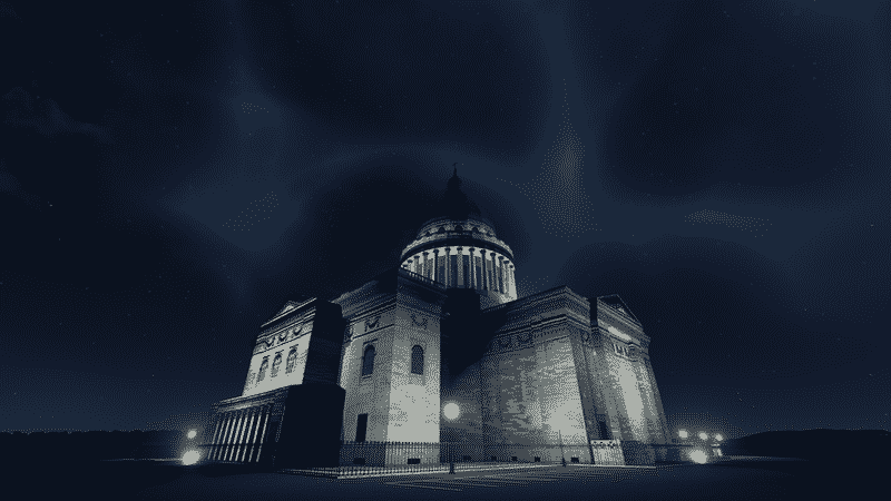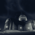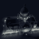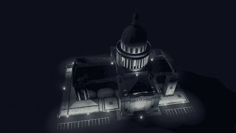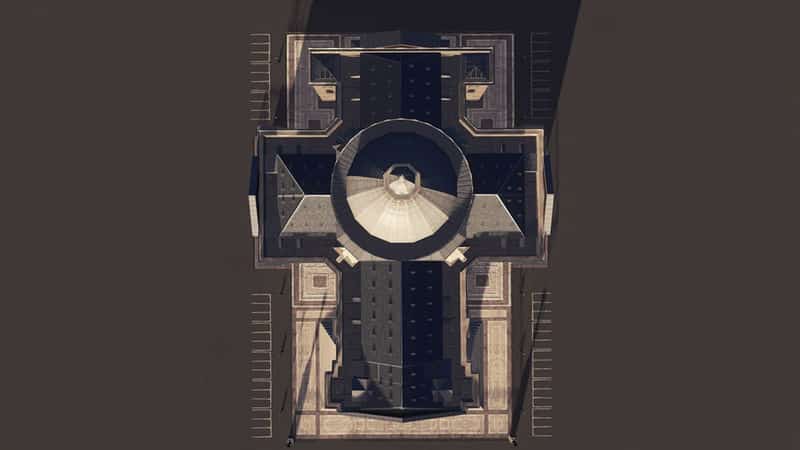 As for the exterior, there are only several reflectors mounted on nearby buildings to illuminate the dome at night.