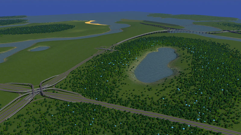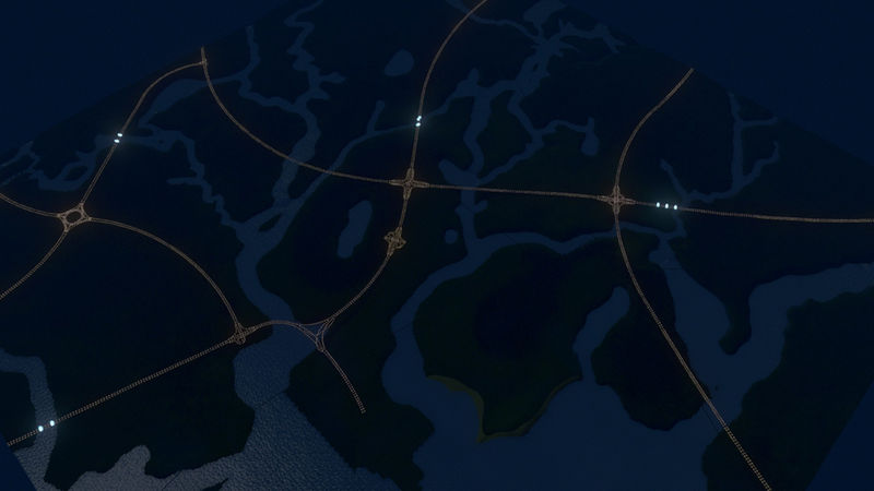 With the After Dark Expansion featuring added value to shore line, I added and expaned the rivers. Only one edge of the harbour has a ridge, the rest are as smooth as can be. With 8 air routes I think this map might make for a good airport. Or they’ll all end up circling it.