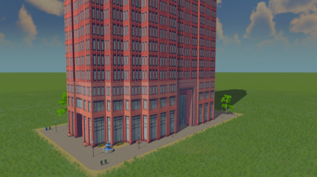 This model is built completely to scale with as much accuracy as possible, though a few small liberties were taken. It sits on an 11×6 lot and can be found among the Level V Unique Buildings within the in-game menu.