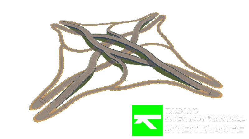What started out as a simple merge between the Gothic and Windmill design, became one of the most efficient designs in interchange history… And nobody has even built it yet! Seriously, when I read about this design I was pretty damn impressed with its simple, yet elegant design. In real life, this is pretty much what’s considered the pinnacle today. The only problem is that no country has decided to build it yet. In Cities Skylines… Well, I honestly think It could be one of the best designs in-game aswell. It has better capacity than the stack and turbine interchange. The only problem is its size, taking up more space than any previous interchange I’ve done. However, its low elevation makes it easier to plop down than its taller counterparts, an in my opinion, looks better than a 100-metre stack! In short, its a beast!