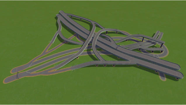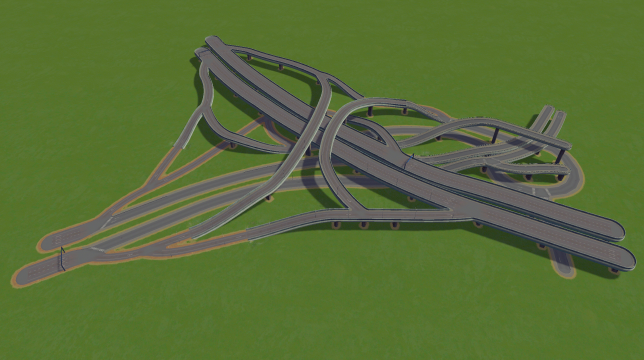 Here it is! It’s the pasta interchange, the nudle crossing, the one and only Spaghetti Junction… Or Gravelly Hill Interchange, since that’s its real name. I hope I’ve been faithful enough recreating the interchange; the asset editor does have its limitations, sizewise. So this is the interchange that has been described as “a cross between a plate of spaghetti and an unsuccessful attempt at a Staffordshire knot”, and for good reason! What I personally find interesting is the fact that there’s so much more going on underneath the interchange itself. Beneath it you can find three intersecting rivers, two railway lines and a canal junction! I believe this is what road porn enthusiasts would call a “junction orgie”