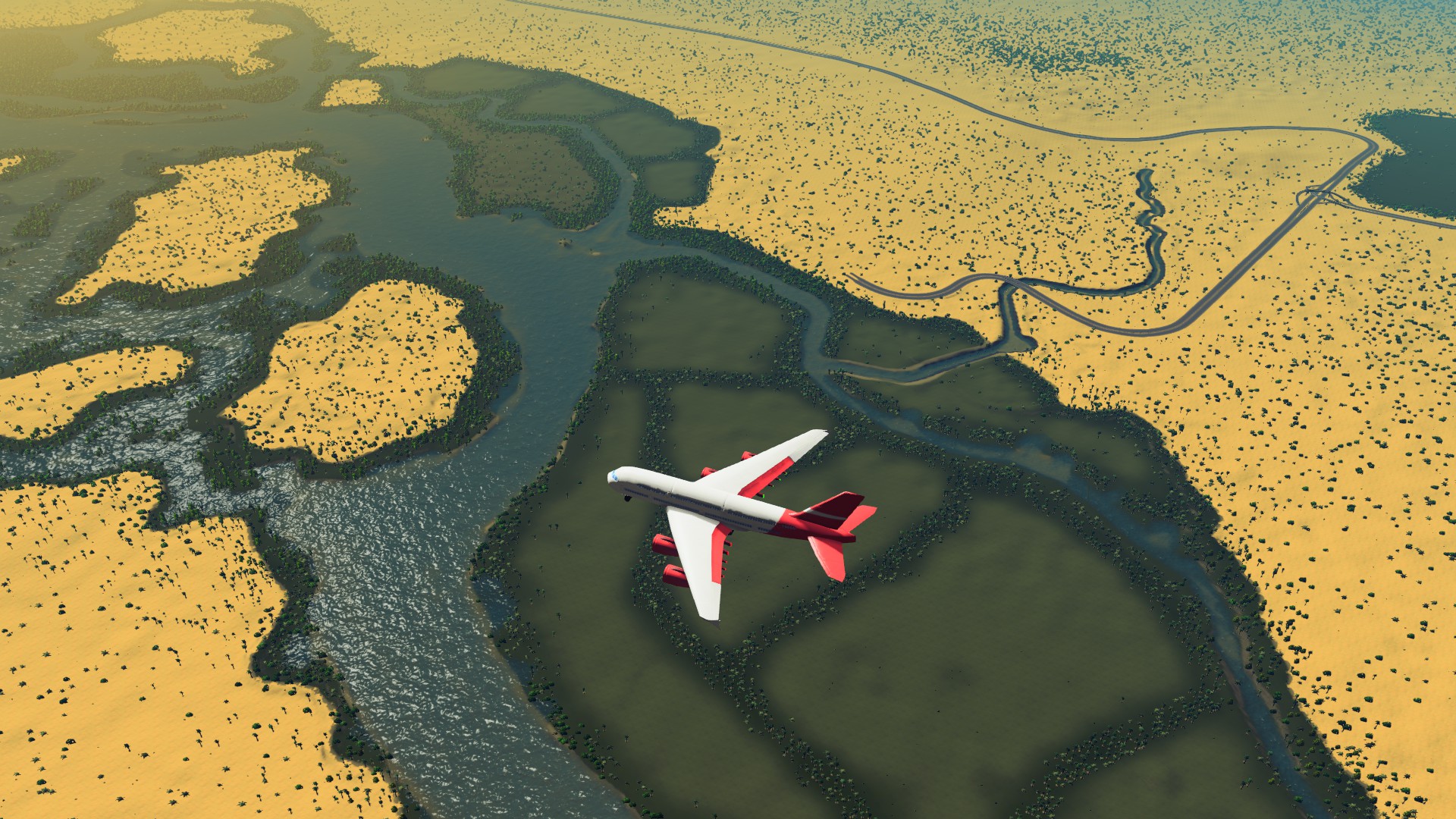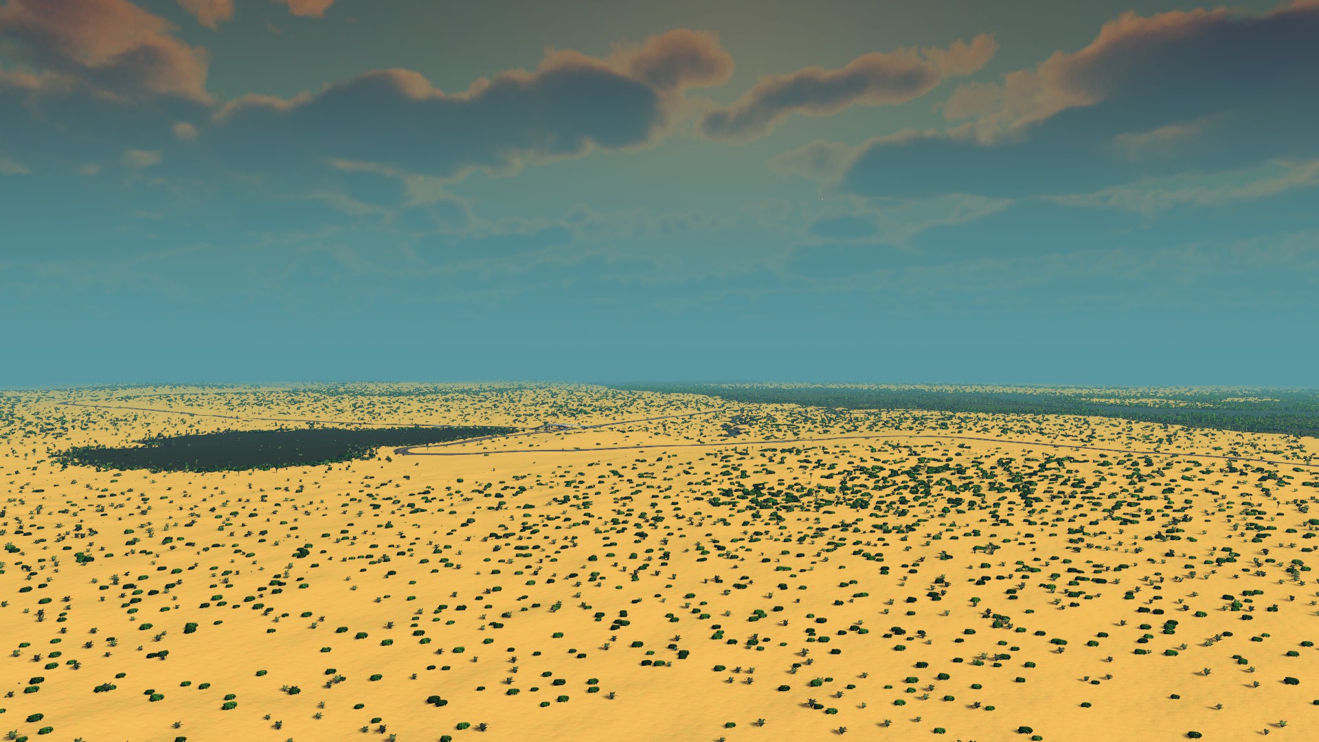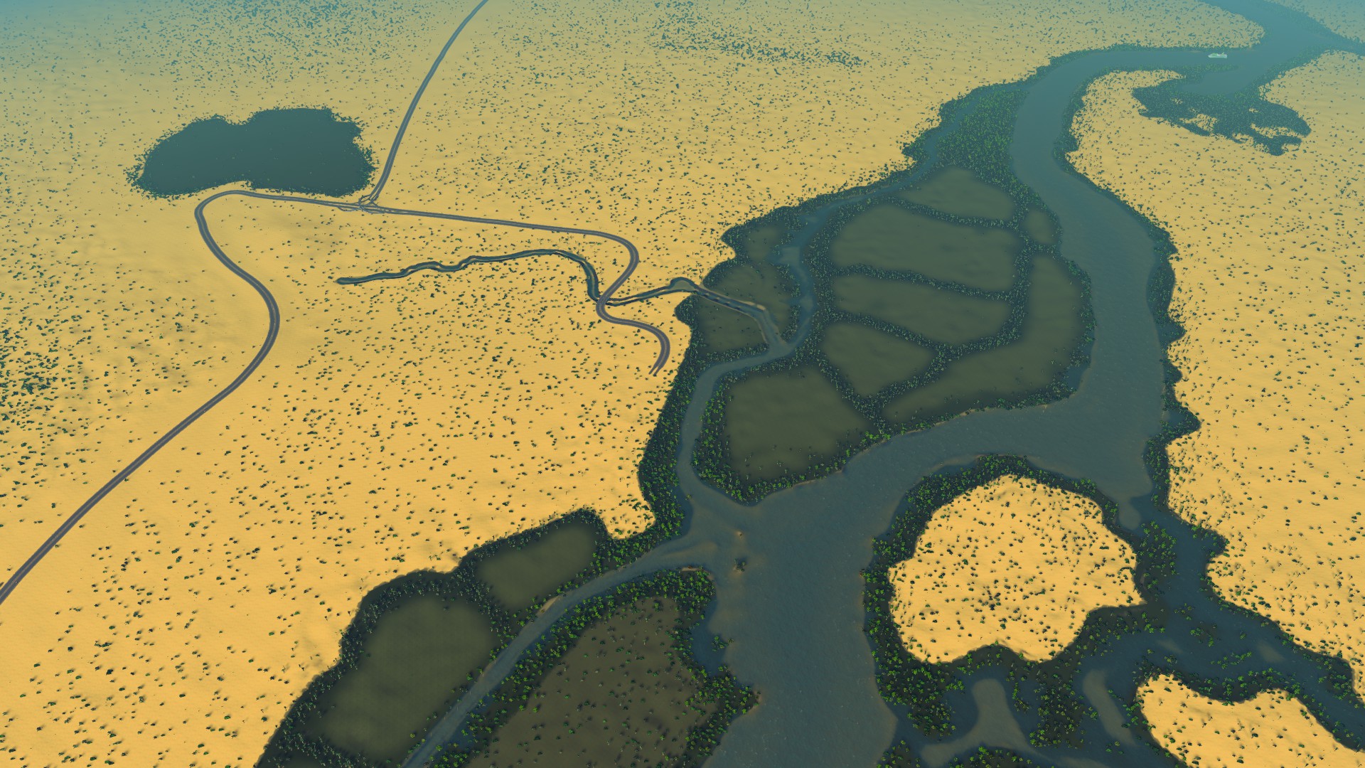 There are several oil & ore fields, and also a few strips of farmland along the river. The map is very flat, and building should be quite easy. In reality, there is an airport to the west of the small canal. I made sure the land there is flat enough for construction.