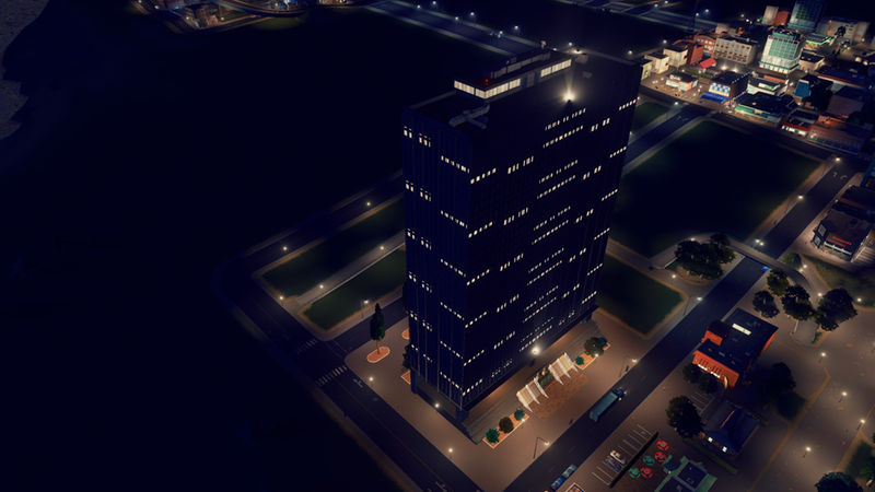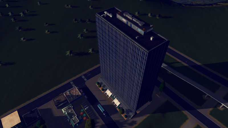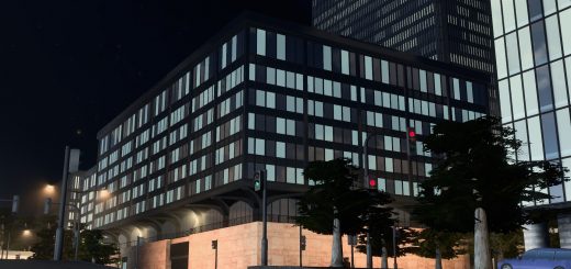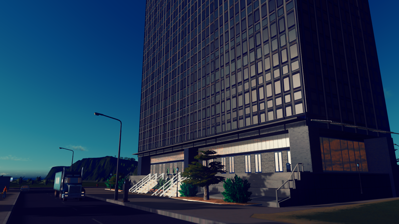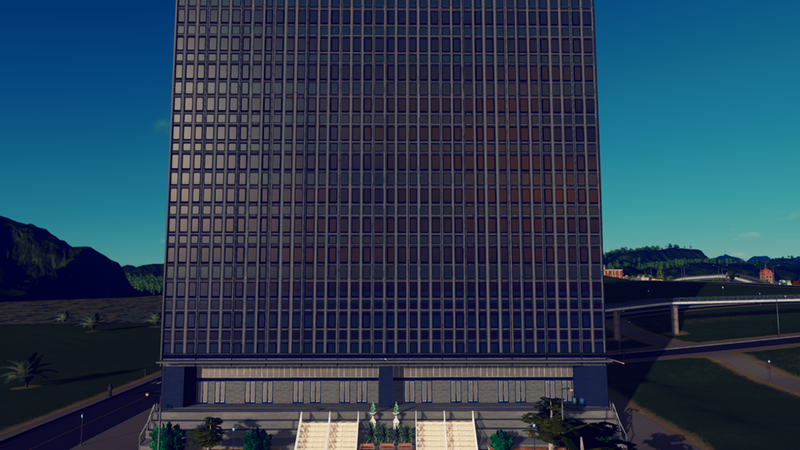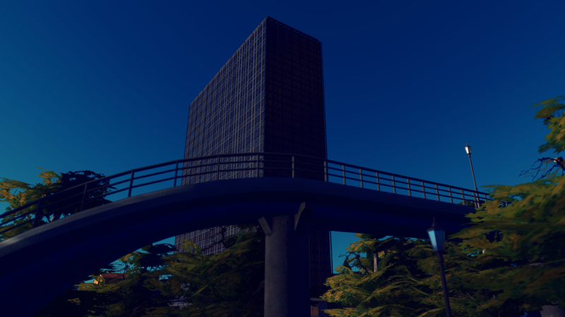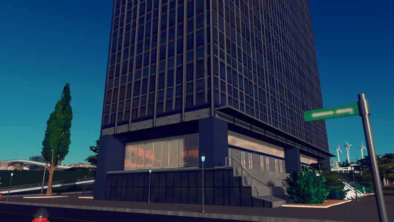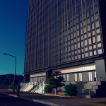 8×10 Unique Building. As close as I could get this to a 1:1 and it’s – for all intents and purposes – a 1:1 building. 4 material variations will vary the darkness of this building. The building is fairly dark IRL unless light is hitting it directly and the teal and navy stained tinted glass make it a imposing building. AfterDark ready. Properties in the picture roll. Asset can be found in LVL3 Unique Buildings. See the side bar for added props that make this asset better.