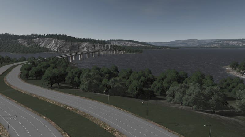 The preview pictures use VIVID color correction and Realistic Boreal map theme. The trees shown in preview pictures are required items for this map (I guess there won’t be any trees if you don’t have the required assets).