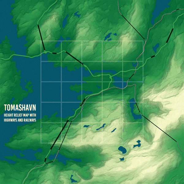 Tomashavn is a map based loosely on Bergen in Norway. The map is not to scale and the original terrain model is moderately modified for playing purposes.