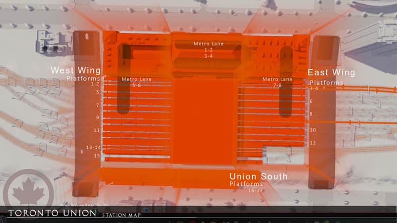 Its central position in Canada’s busiest inter-city rail service area, “The Corridor”, as well as being the central hub of GO Transit’s commuter rail service, makes Union Station the busiest transportation facility in Canada, serving over 250,000 passengers a day. More than half of all Canadian intercity passengers and 91% of all commuter train passengers travel through Union Station.